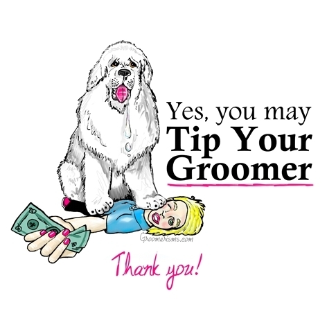 Encourage more tipping with this cute and funny cartoon of a groomer squashed by a giant, drooling dog! Download a .jpg version of this artwork, suitable for printing up to 8.5" x 11" size. "Groomerisms.com" watermark will NOT appear on your downloaded file.